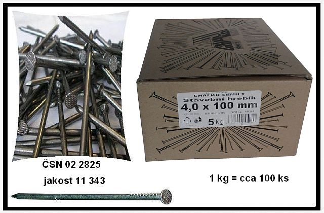 70231 Hrebik stav.100 x 4,0 5KG foto 36,23 Kč / kg Nejste přihlášen/a